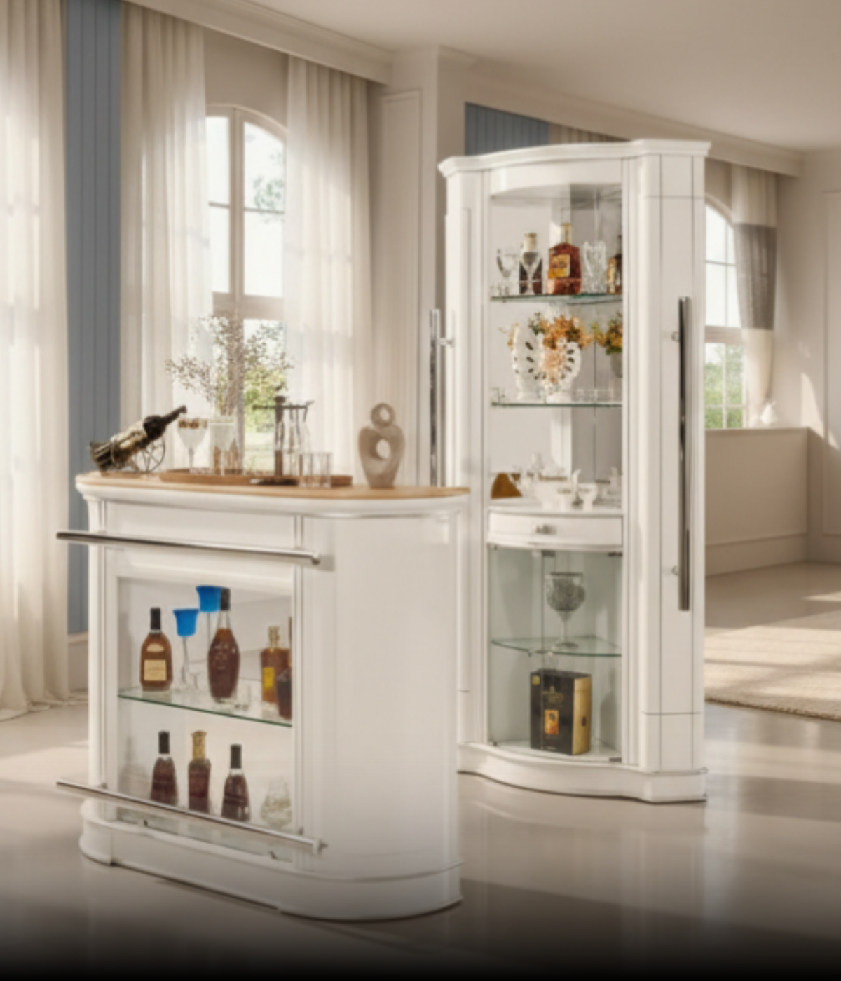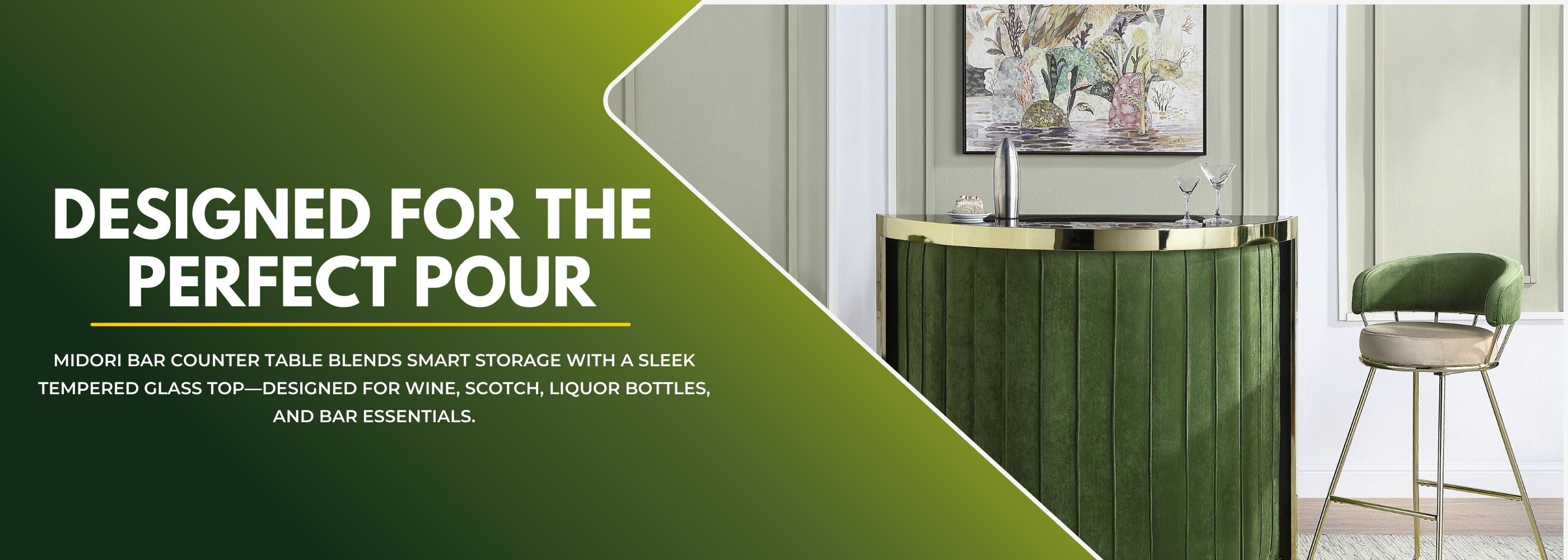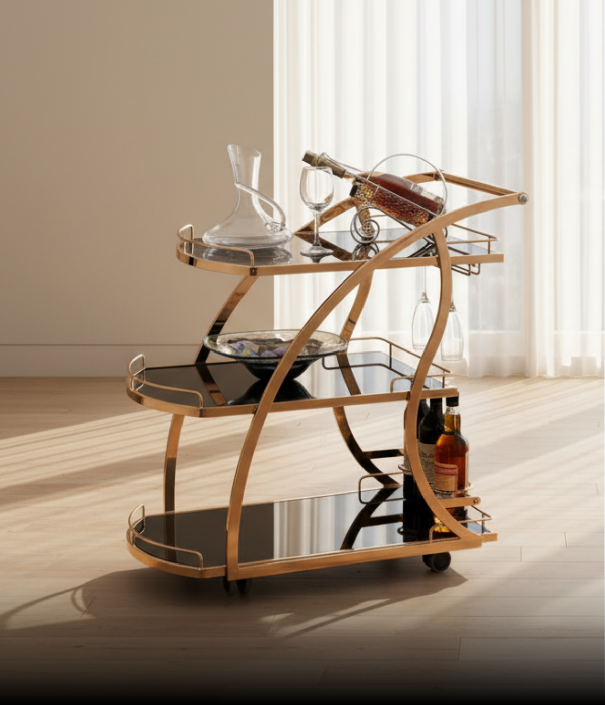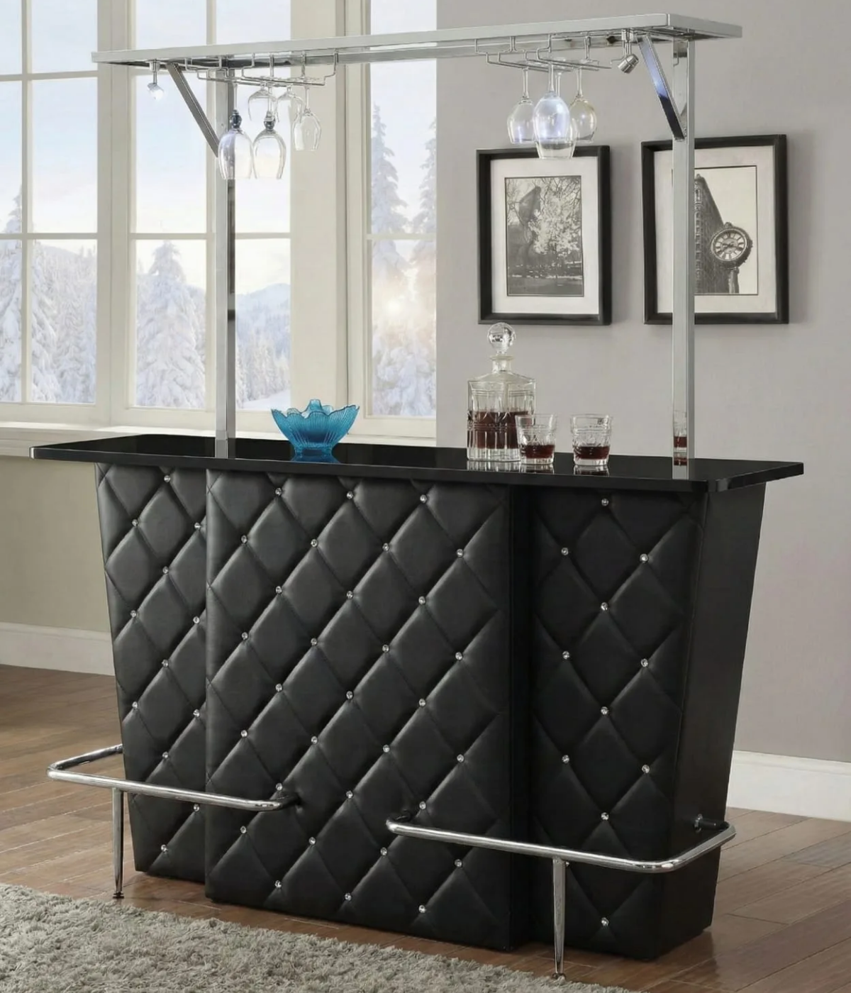 The Crown Bar Counter brings a sleek, modern look to your entertainment space while offering practical storage and display features for your favourite spirits, glassware, and bar accessories. Designed in a classic black and gold finish with tempered glass top and front, this bar counter complements contemporary interiors and makes an eye‑catching focal point in living rooms, lounges, man caves, or dedicated home bars.