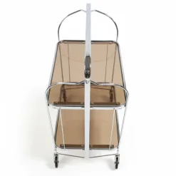 Elevate your living space with the Gatsby Bar Cart, a versatile and foldable trolley designed to bring both elegance and functionality to your home. Crafted with a radiant chrome metal frame and stained tempered glass shelves, this bar cart is the perfect blend of luxury and practicality.