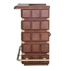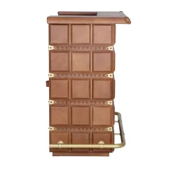 - Premium, heavy-duty antique brass-finished hardware, including corner brackets and leather-accented ring pulls, enhances the trunk-like design.