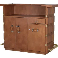 Elevate your home with the Prestige Leather Bar Counter, a sophisticated piece inspired by vintage campaign furniture. Clad in high-quality Top Grain Leather and accented with brass hardware, this counter is a statement of enduring luxury and practicality.