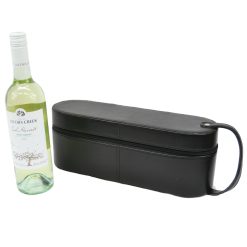 Single Wine Holder in a Black colour with ostentatious, polished texture of leather and a firm base. The handle of this wine holder has a rather classy and vivid touch to customise corporate gifts it.