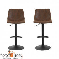 Set of 2 Bar Stools Gas Lift PU Leather- Brown
